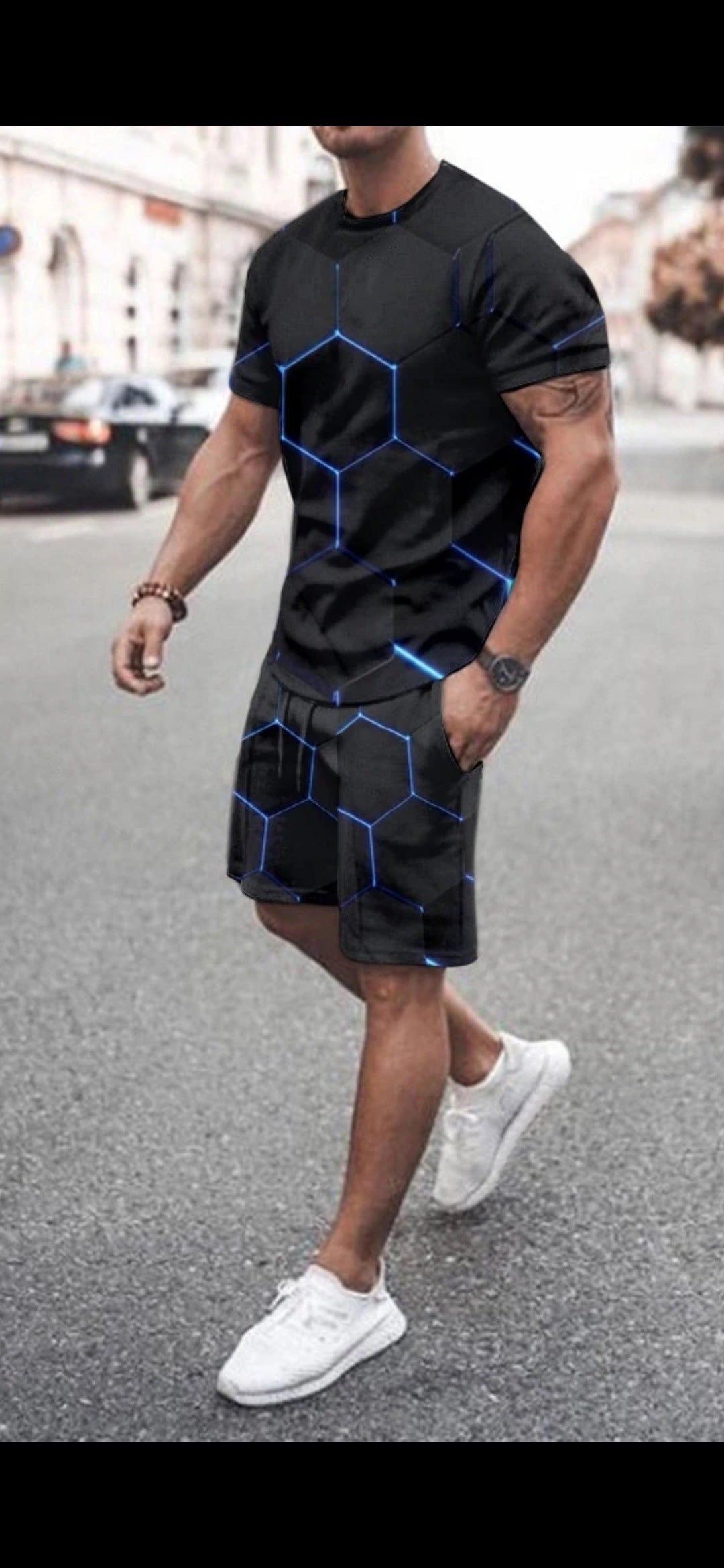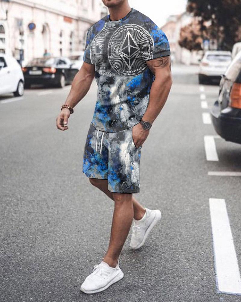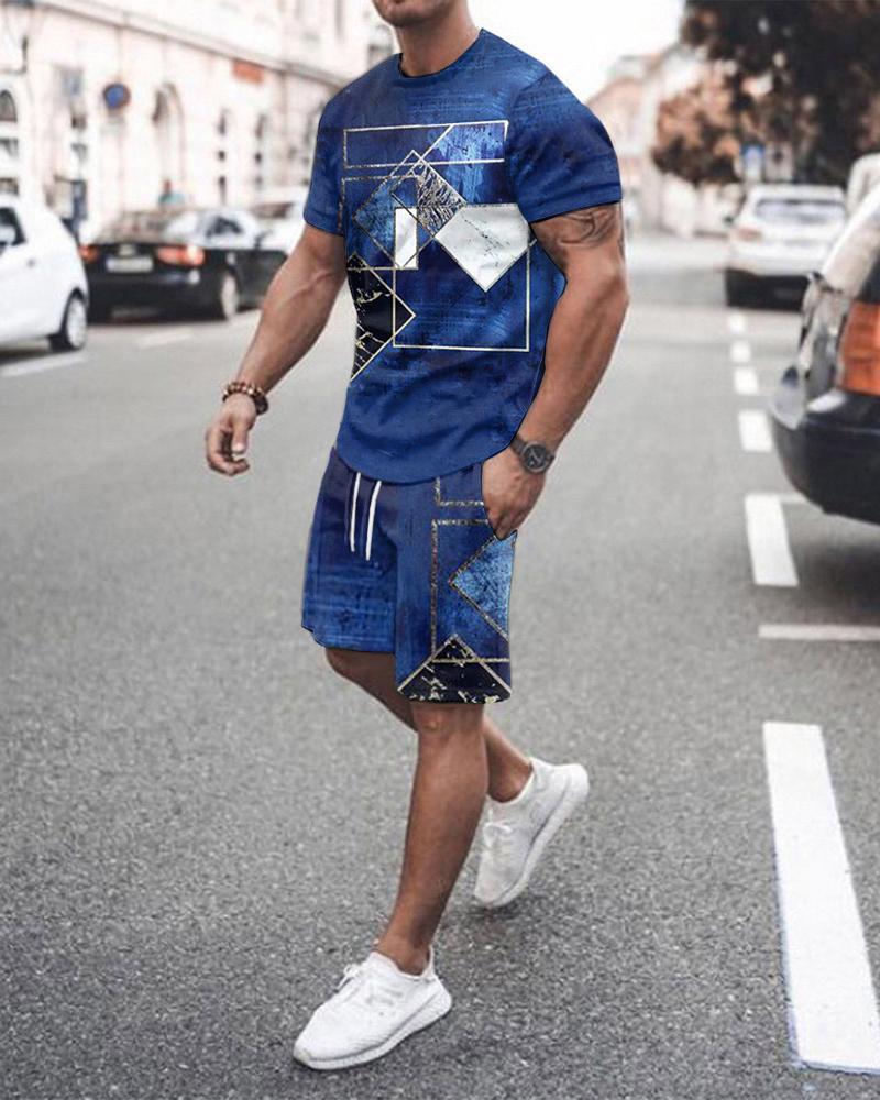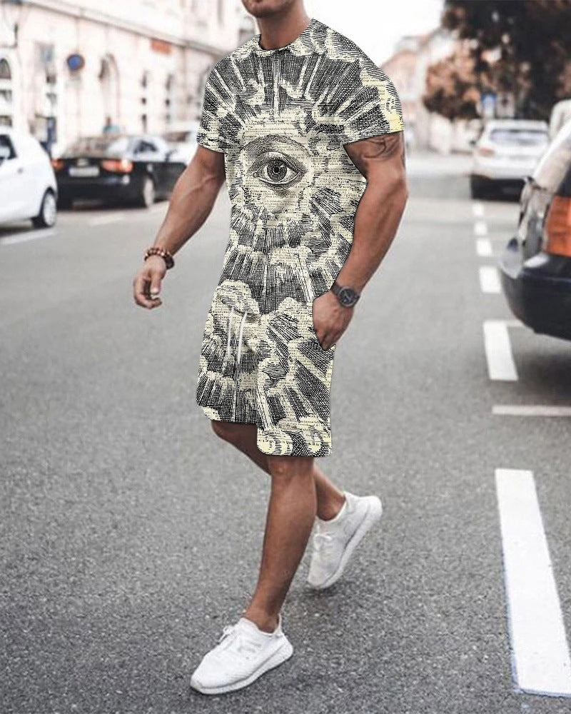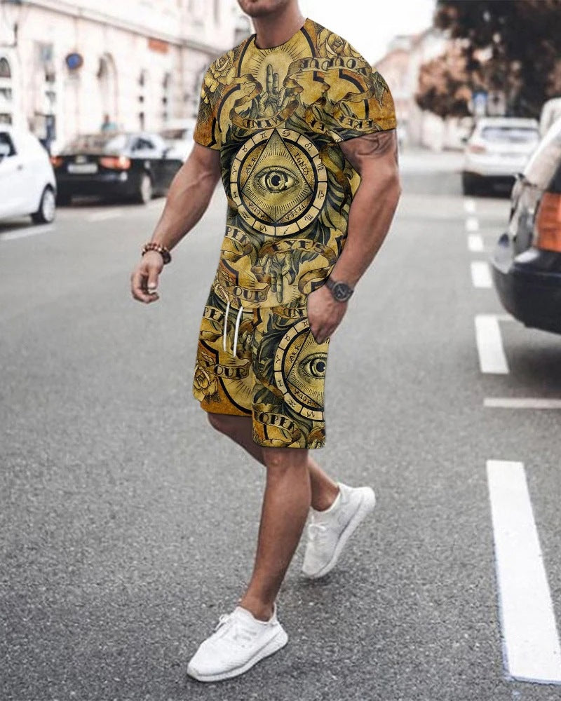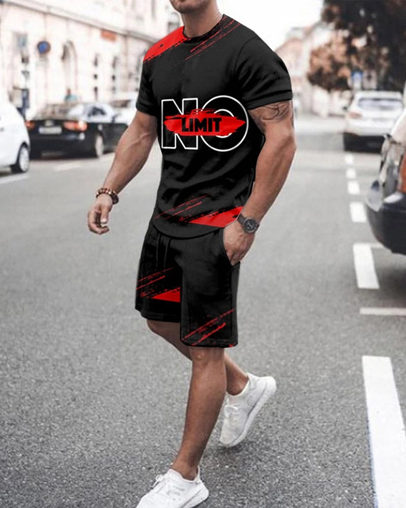 Fashion Simple Men's Short-sleeved Shorts Two-piece Suit