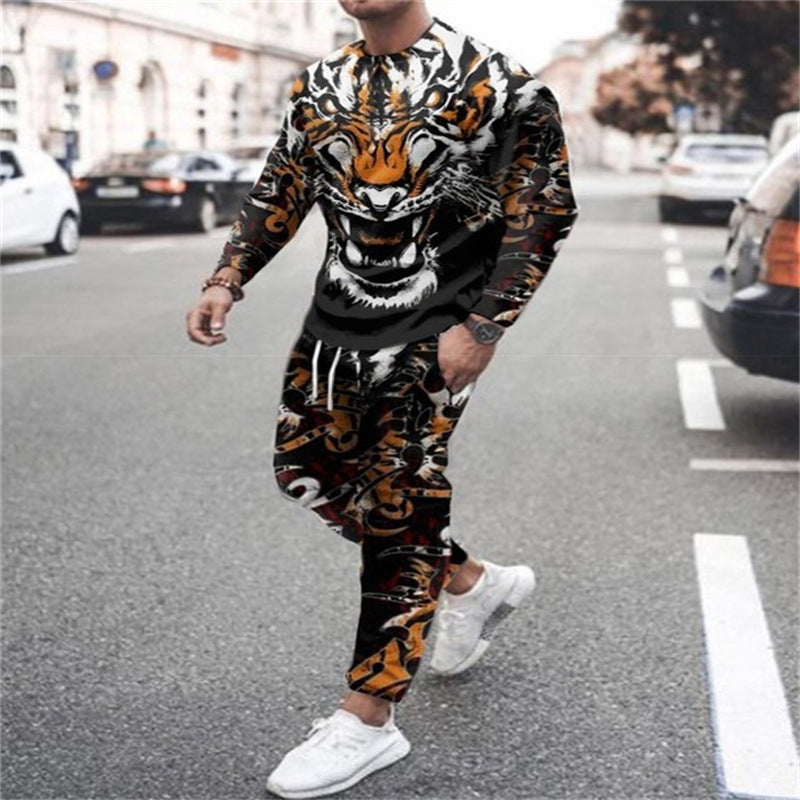 Men's 3D Digital Printing Long Sleeve Shorts Round Neck Suit